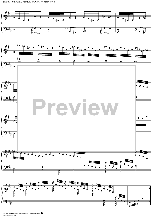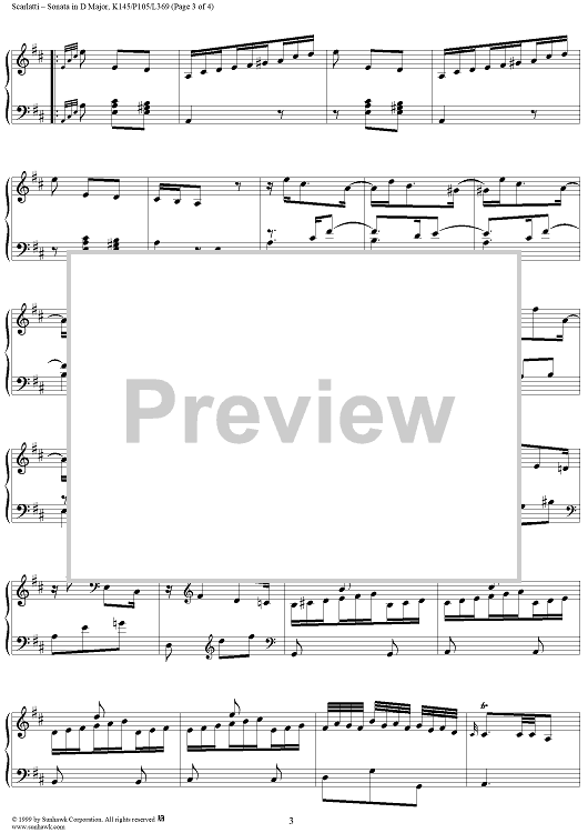 Digital Sheet Music for Sonata in D major - K145/P105/L369 by Domenico Scarlatti scored for Piano Solo; id:257270