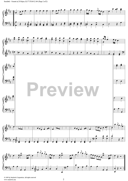 Digital Sheet Music for Sonata in D major - K177/P184/L364 by Domenico Scarlatti scored for Piano Solo; id:257188