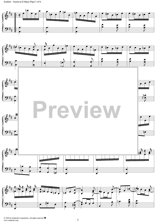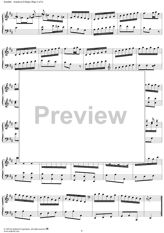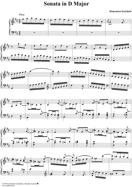 Digital Sheet Music for Sonata in D major (K224/P225/L268) by Domenico Scarlatti scored for Piano Solo; id:257491