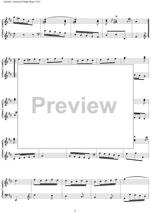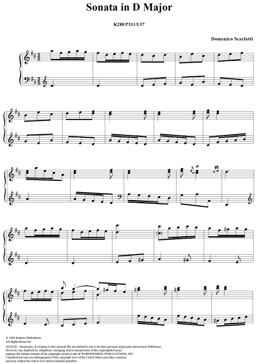 Digital Sheet Music for Sonata in D major - K288/P311/L57 by Domenico Scarlatti scored for Piano Solo; id:257081
