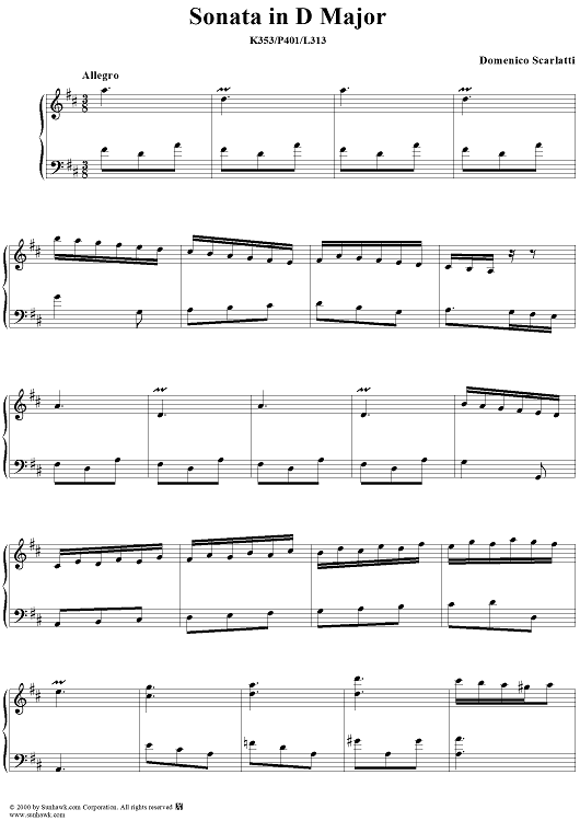 Digital Sheet Music for Sonata in D major, K353 by Domenico Scarlatti scored for Piano Solo; id:216765