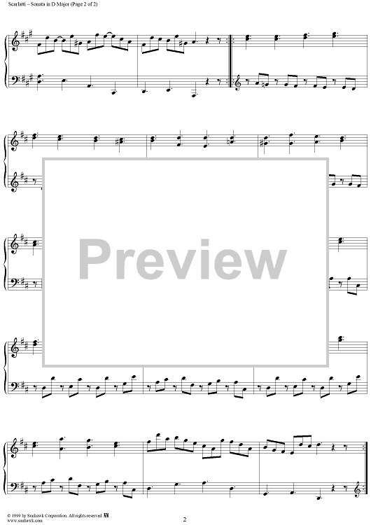 Digital Sheet Music for Sonata in D major (K415/P175/LS11) by Domenico Scarlatti scored for Piano Solo; id:257575