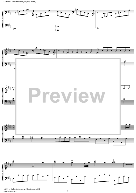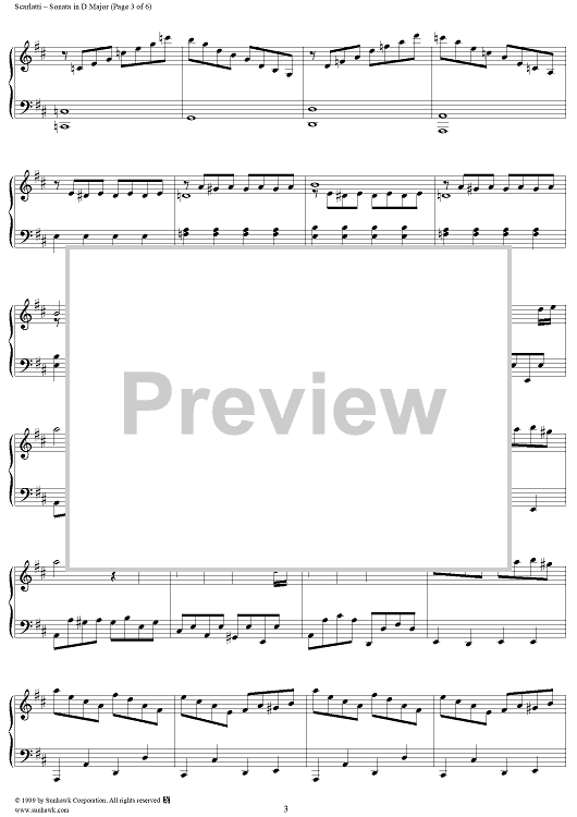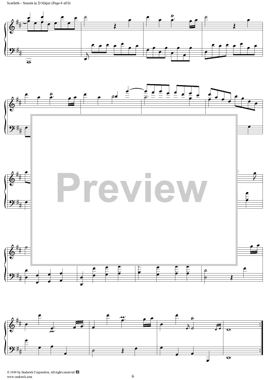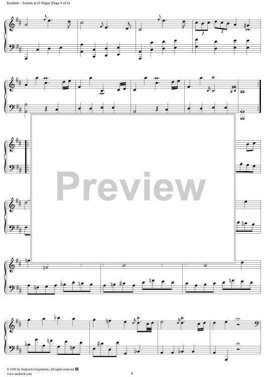 Digital Sheet Music for Sonata in D major (K479/P380/LS16) by Domenico Scarlatti scored for Piano Solo; id:257317