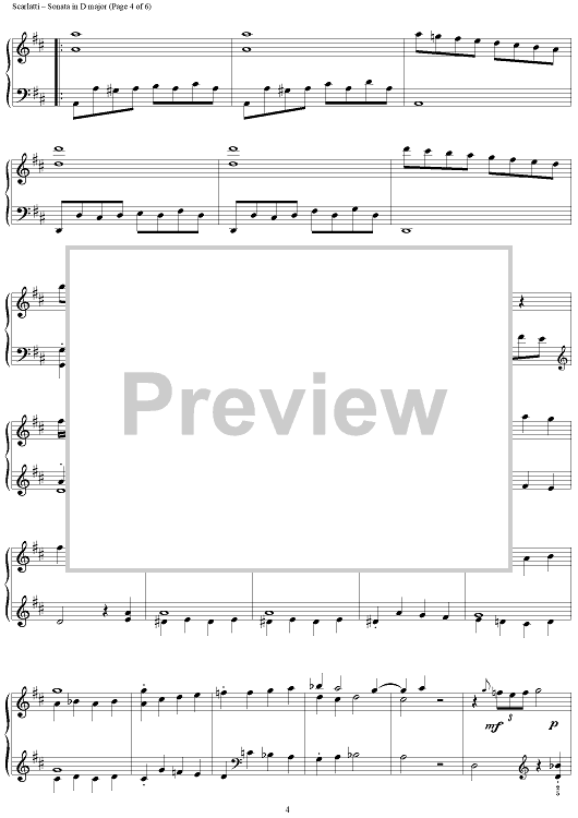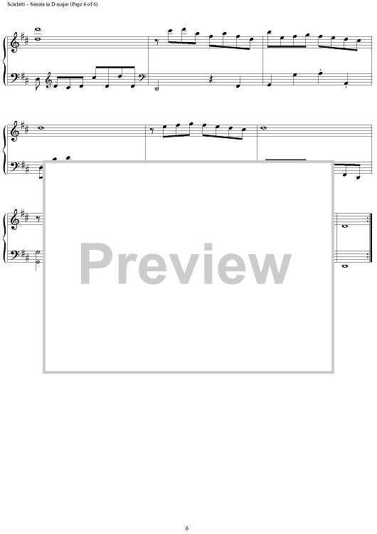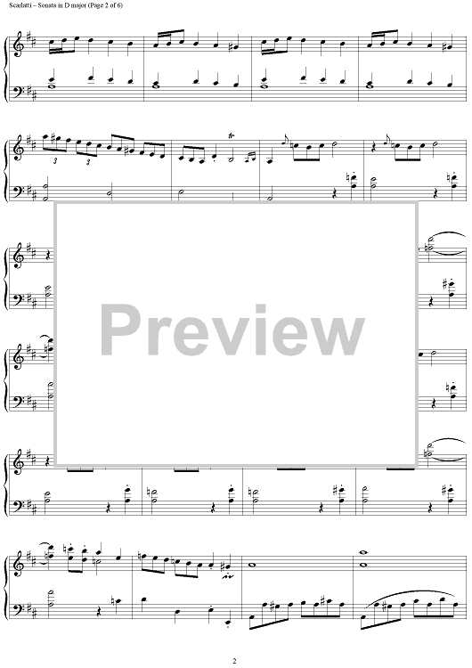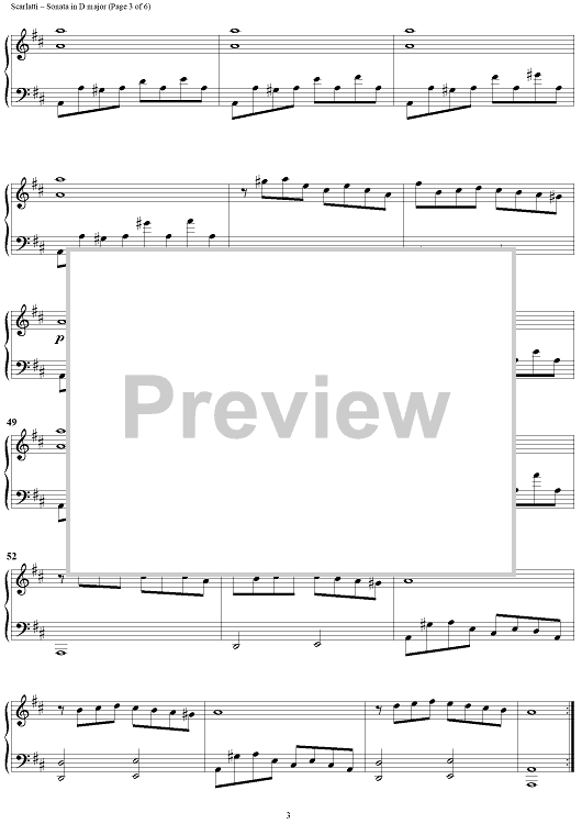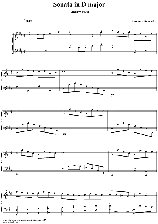 Digital Sheet Music for Sonata in D major (K480/P381/LS8) by Domenico Scarlatti scored for Piano Solo; id:257462