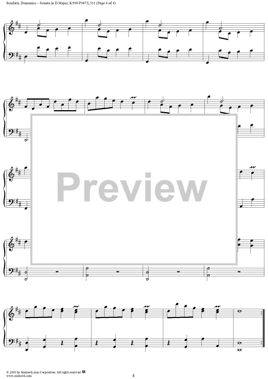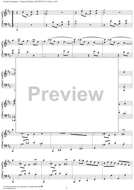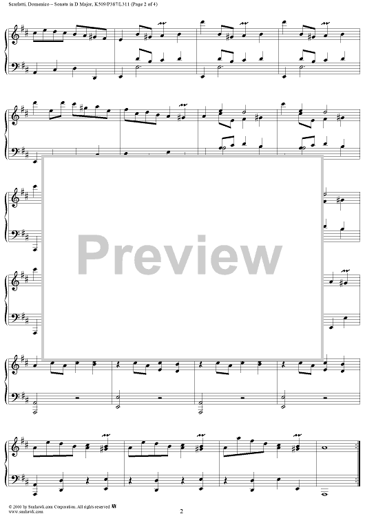 Digital Sheet Music for Sonata in D major, K509 by Domenico Scarlatti scored for Piano Solo; id:216749