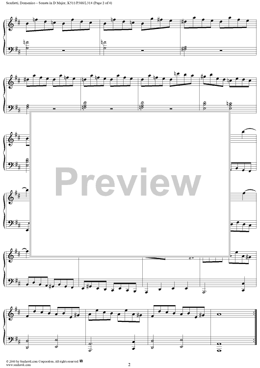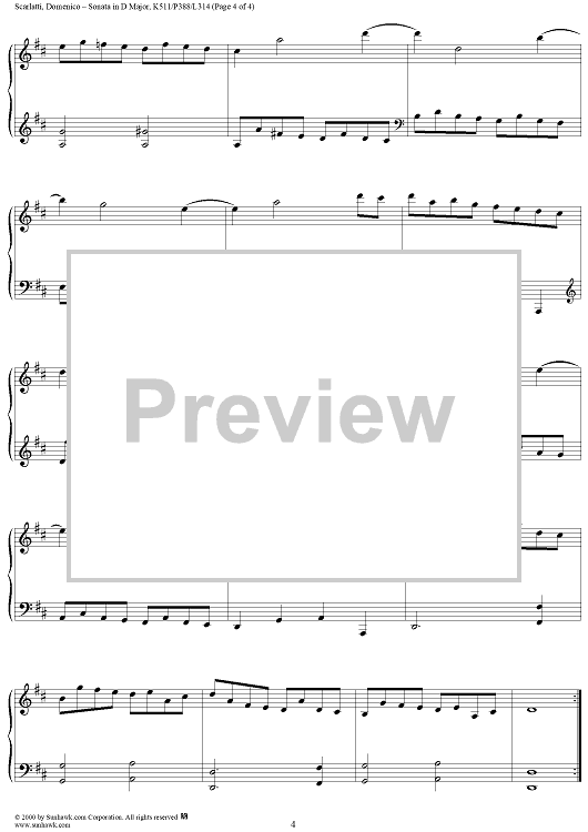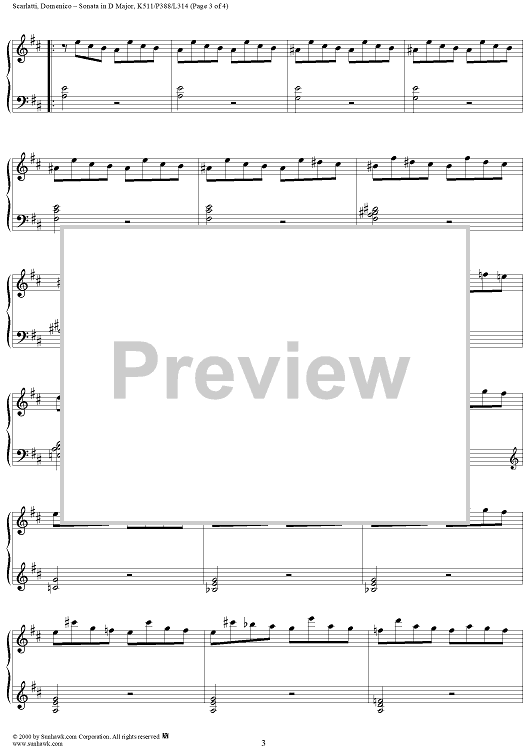 Digital Sheet Music for Sonata in D major, K511 by Domenico Scarlatti scored for Piano Solo; id:216759
