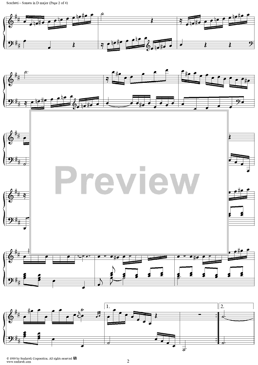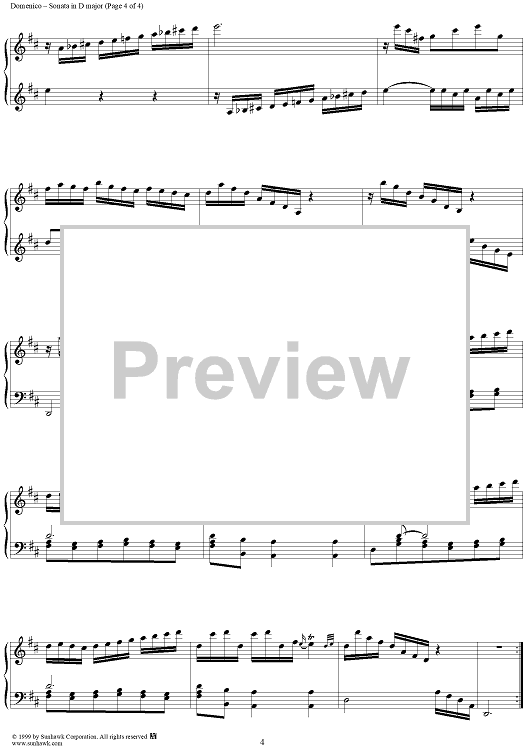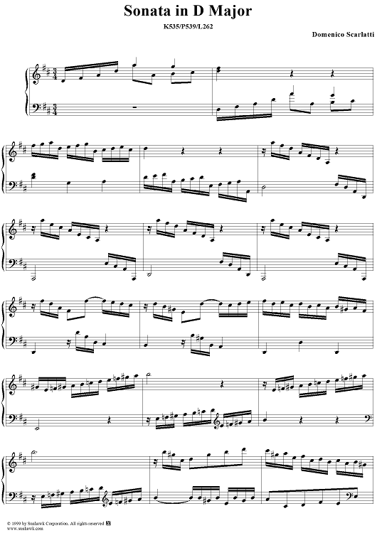 Digital Sheet Music for Sonata in D major (K535/P539/L262) by Domenico Scarlatti scored for Piano Solo; id:257483