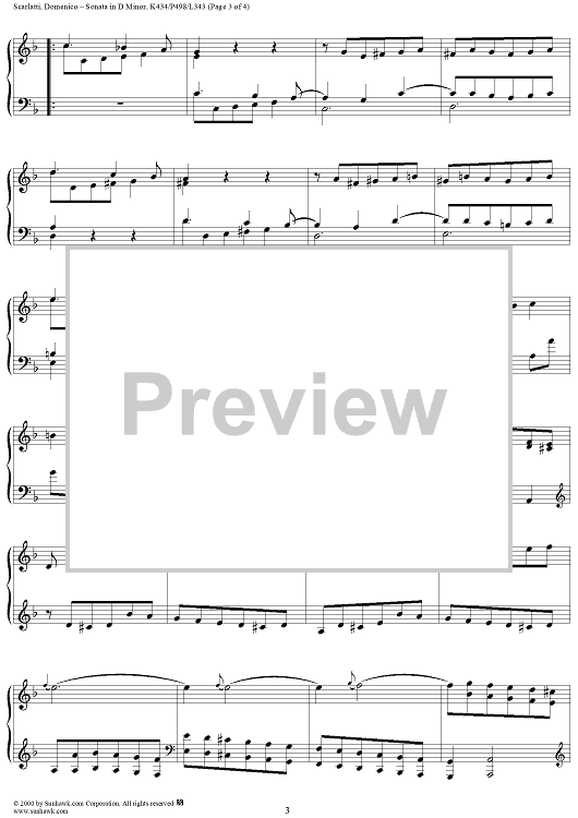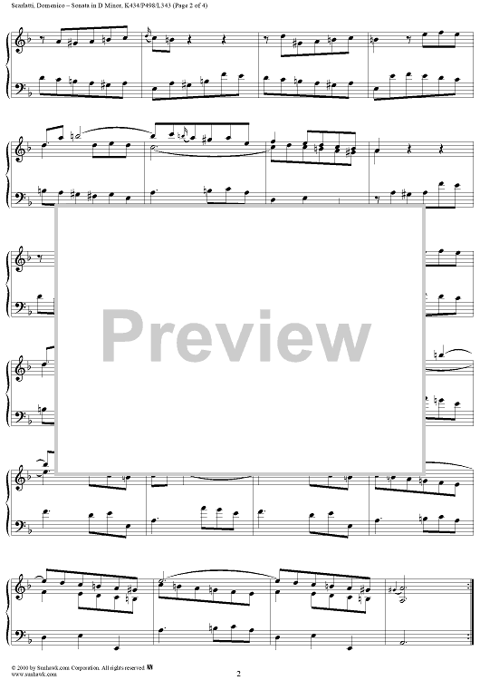 Digital Sheet Music for Sonata in D minor, K434 by Domenico Scarlatti scored for Piano Solo; id:216773
