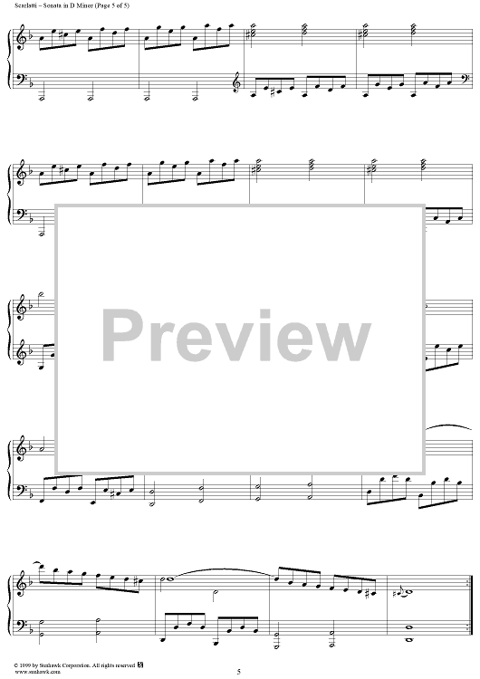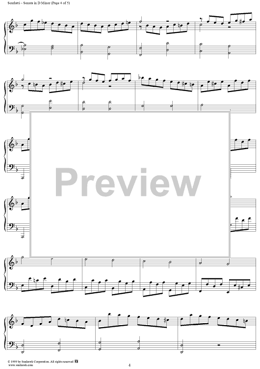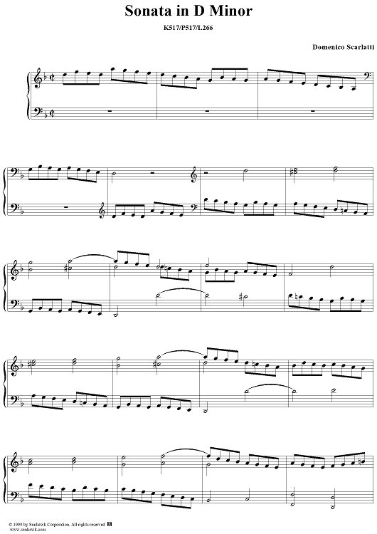 Digital Sheet Music for Sonata in D minor (K517/P517/L266) by Domenico Scarlatti scored for Piano Solo; id:257481