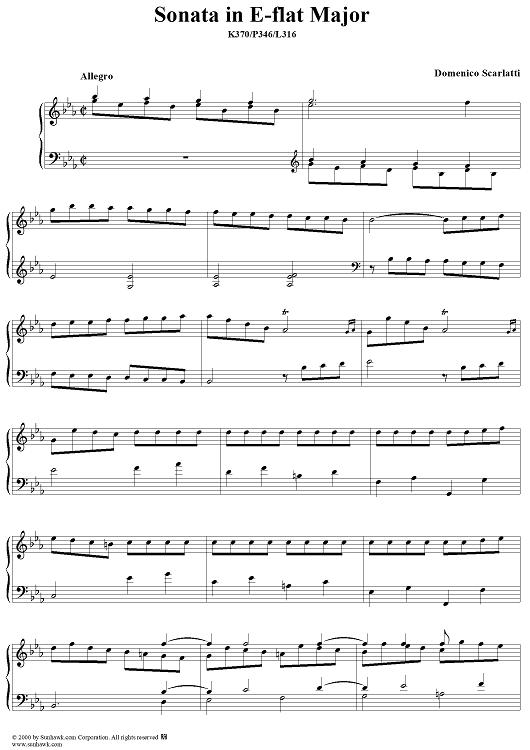 Digital Sheet Music for Sonata in E-flat major - K370/P346/L316 by Domenico Scarlatti scored for Piano Solo; id:257446