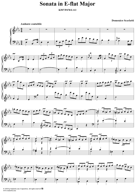 "Sonata in E-flat major - K507/P478/L113" Sheet Music by Domenico Scarlatti