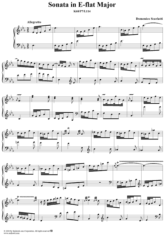 Digital Sheet Music for Sonata in E-flat major - K68/P7/L114 by Domenico Scarlatti scored for Piano Solo; id:257195