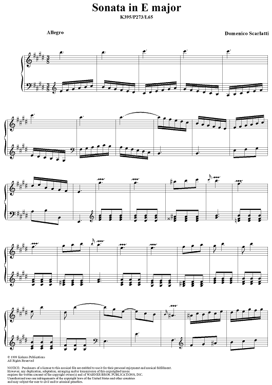 Digital Sheet Music for Sonata in E major - K395/P273/L65 by Domenico Scarlatti scored for Piano Solo; id:257448
