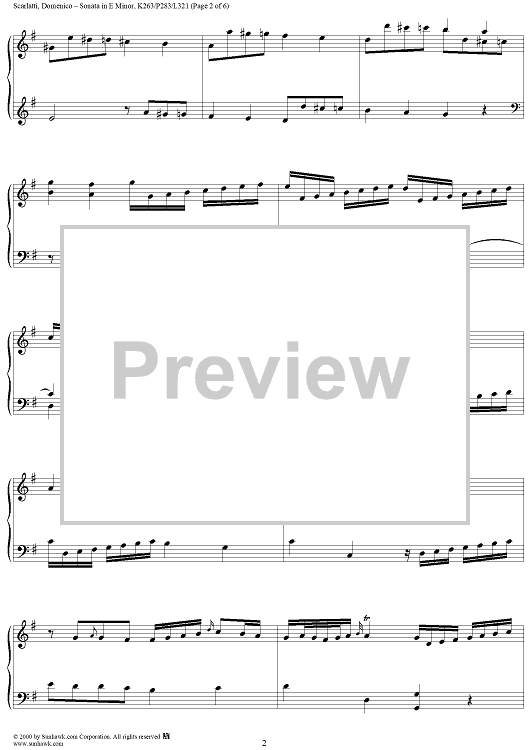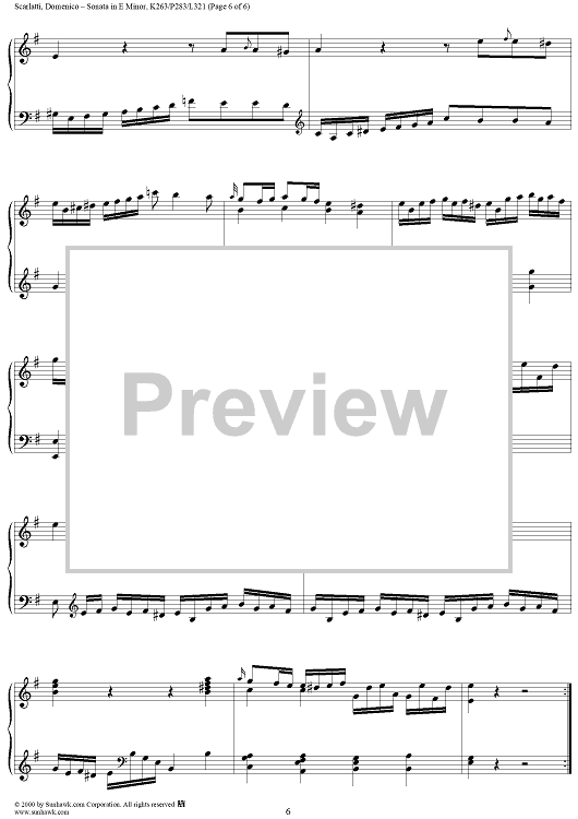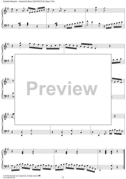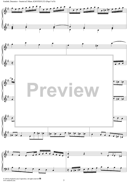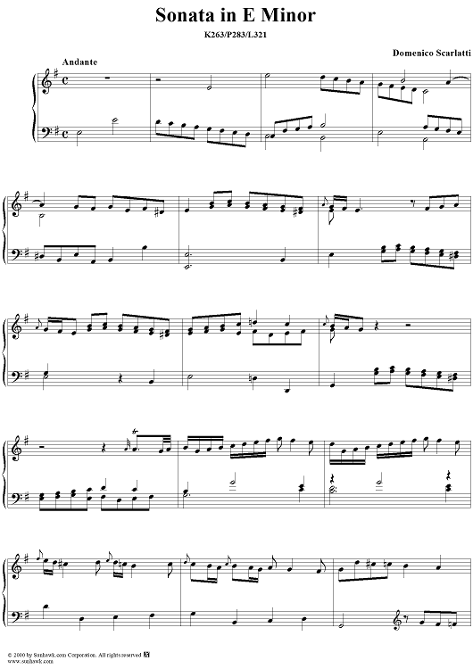 Digital Sheet Music for Sonata in E minor - K263/P283/L321 by Domenico Scarlatti scored for Piano Solo; id:257082