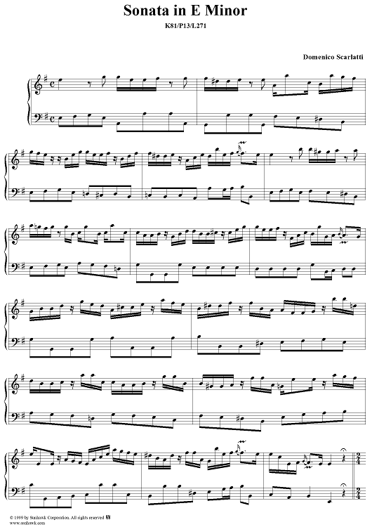 Digital Sheet Music for Sonata in E minor (K81/P13/L271) by Domenico Scarlatti scored for Piano Solo; id:257475