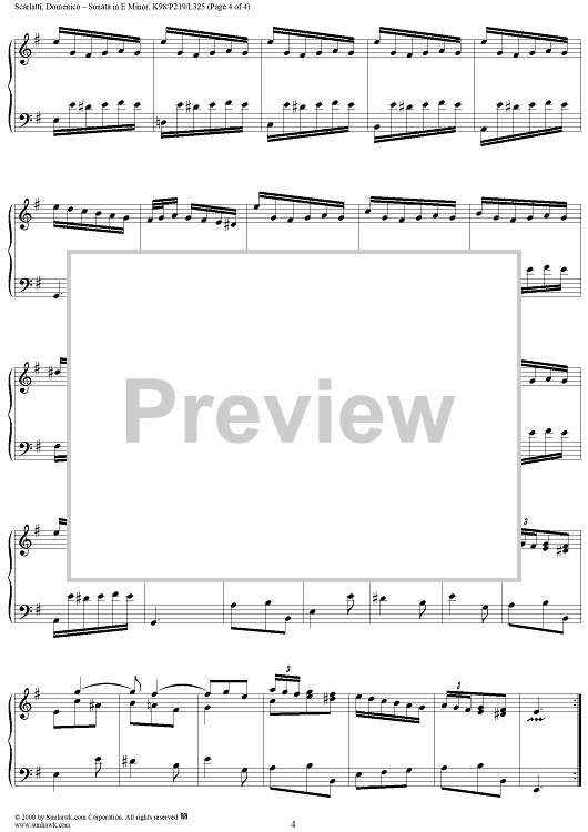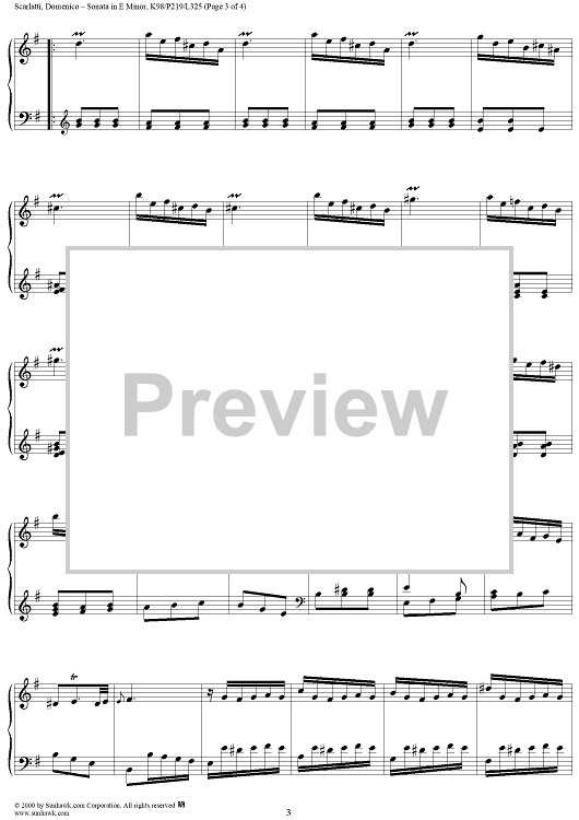 Digital Sheet Music for Sonata in E minor - K98/P219/L325 by Domenico Scarlatti scored for Piano Solo; id:257258