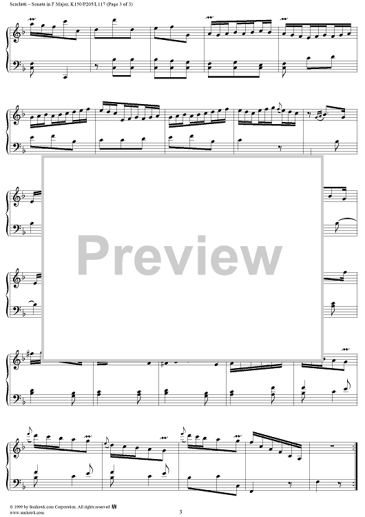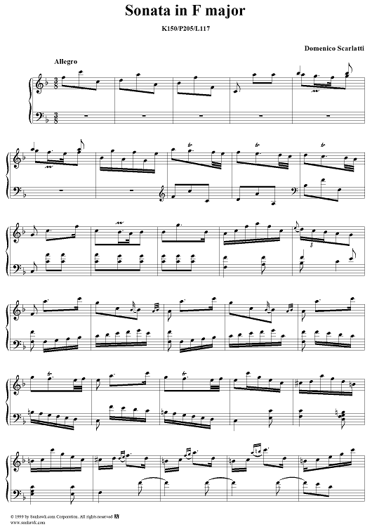 Digital Sheet Music for Sonata in F major - K150/P205/L117 by Domenico Scarlatti scored for Piano Solo; id:257272