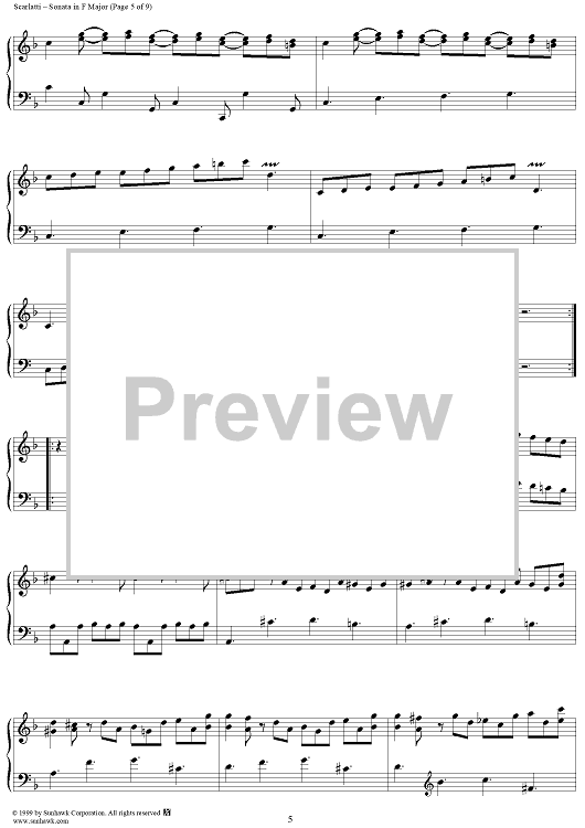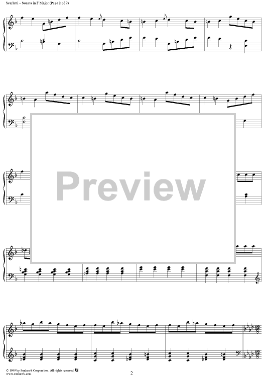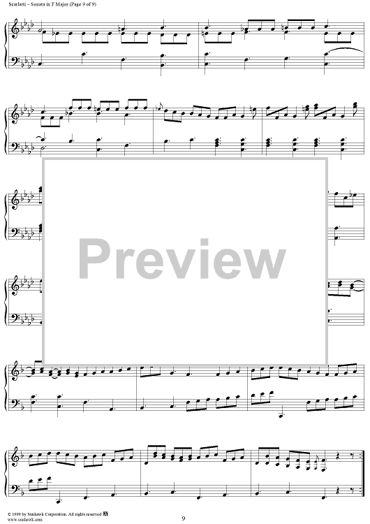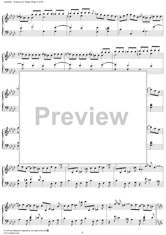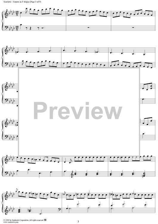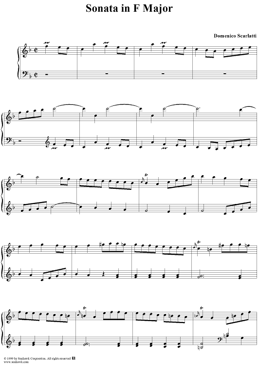 Digital Sheet Music for Sonata in F major (K205/P171/LS23) by Domenico Scarlatti scored for Piano Solo; id:257704