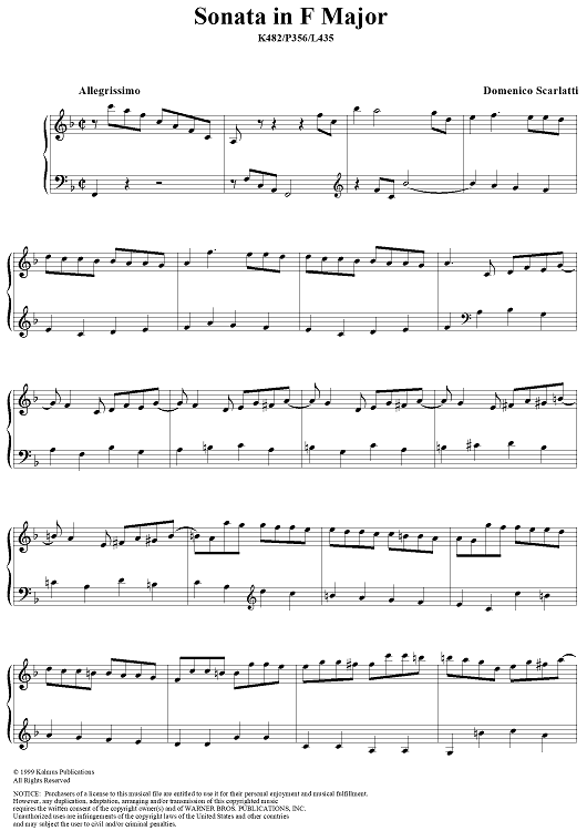 Digital Sheet Music for Sonata in F major - K482/P356/L435 by Domenico Scarlatti scored for Piano Solo; id:257223
