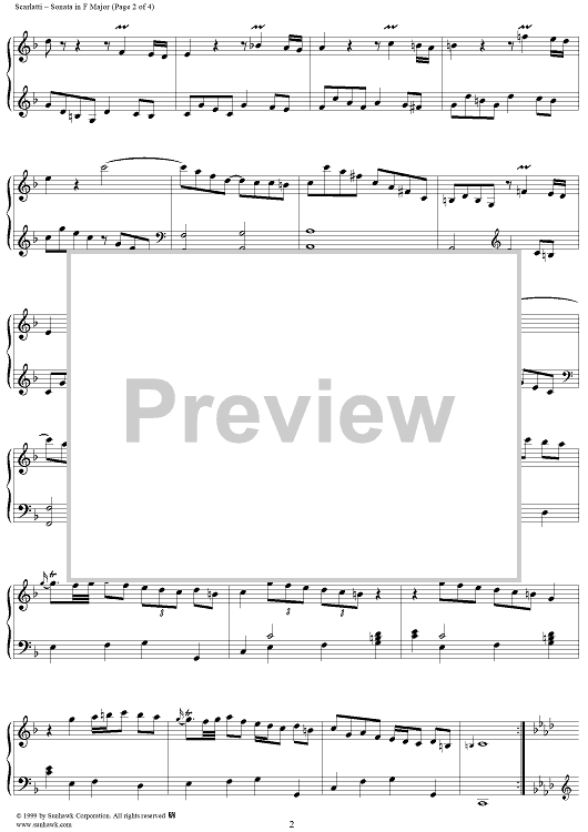 Digital Sheet Music for Sonata in F major (K554/P558/LS21) by Domenico Scarlatti scored for Piano Solo; id:257701