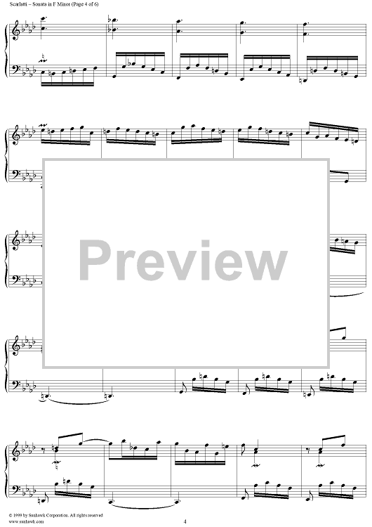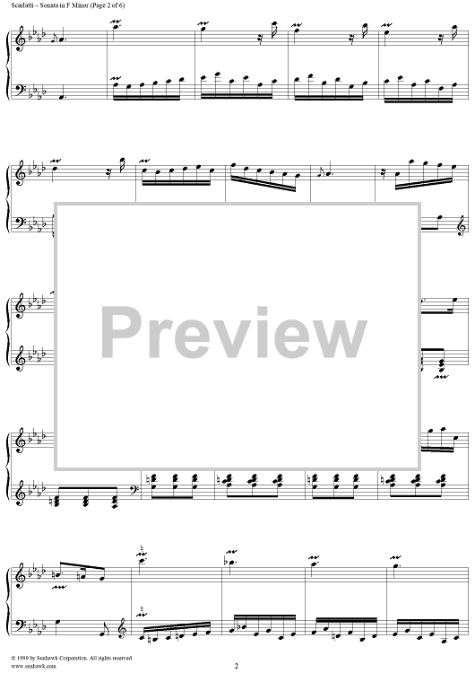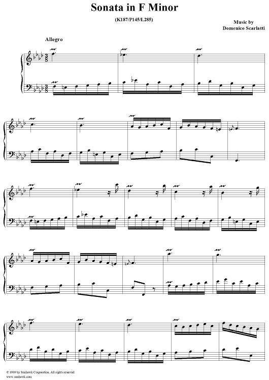 Digital Sheet Music for Sonata in F minor (K187/P145/L285) by Domenico Scarlatti scored for Piano Solo; id:257651