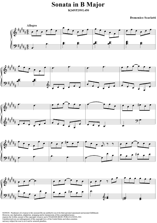 Digital Sheet Music for Sonata in G major - K245/P299/L450 by Domenico Scarlatti scored for Piano Solo; id:257303