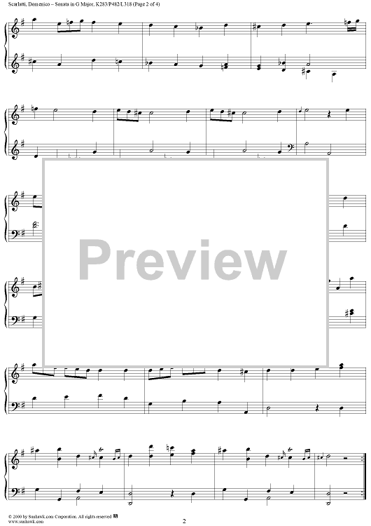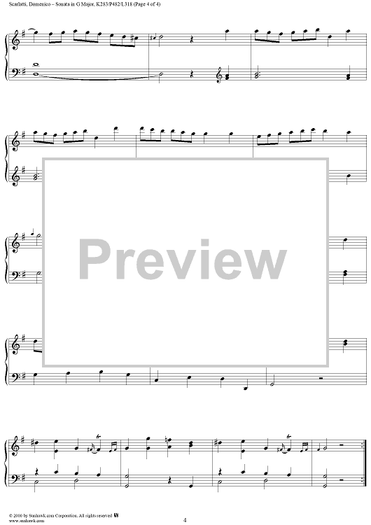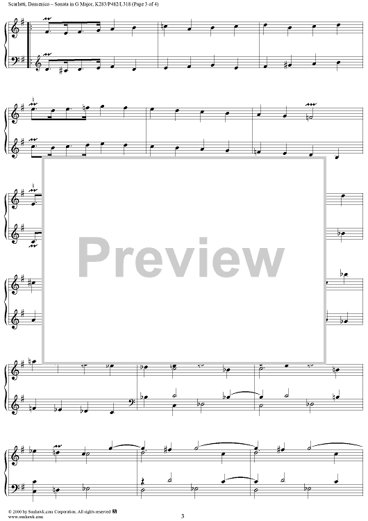 Digital Sheet Music for Sonata in G major - K283/P482/L318 by Domenico Scarlatti scored for Piano Solo; id:257308