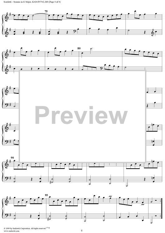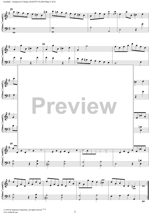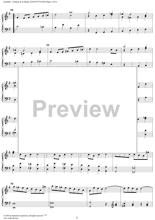 Digital Sheet Music for Sonata in G major (K424/P374/L289) by Domenico Scarlatti scored for Piano Solo; id:257661