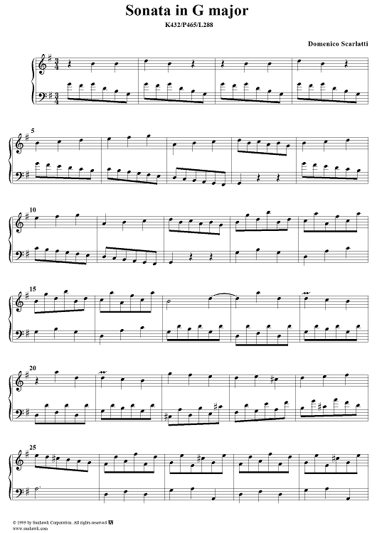 Digital Sheet Music for Sonata in G major (K432/P465/L288) by Domenico Scarlatti scored for Piano Solo; id:257660