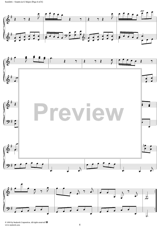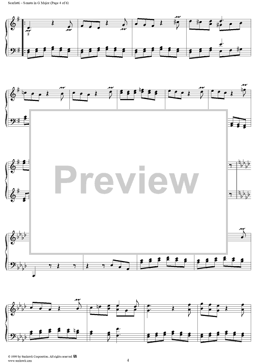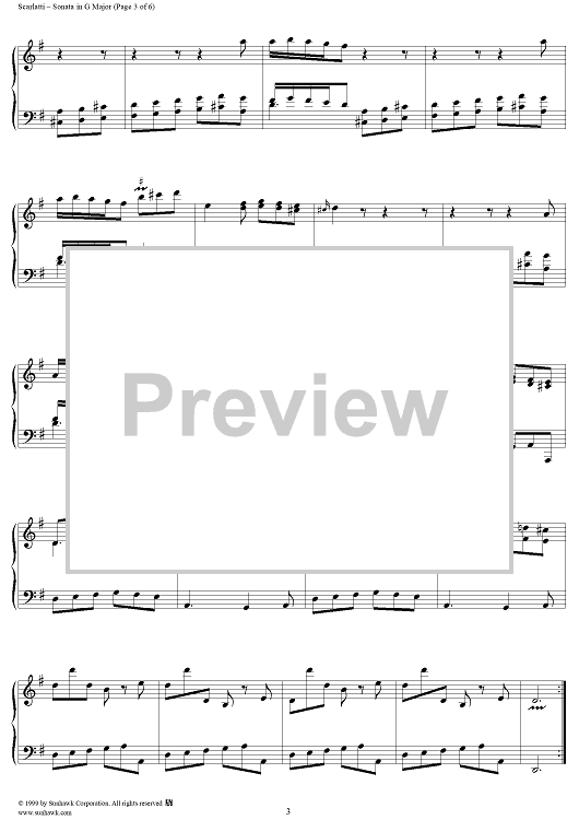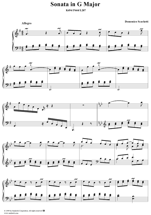 Digital Sheet Music for Sonata in G major (K494/P444/L287) by Domenico Scarlatti scored for Piano Solo; id:257659