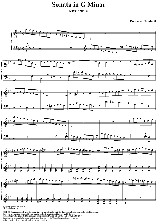 "Sonata in G minor - K373/P158/L98" Sheet Music by Domenico Scarlatti