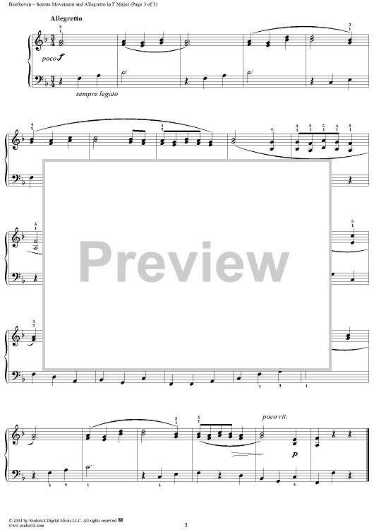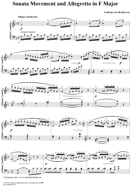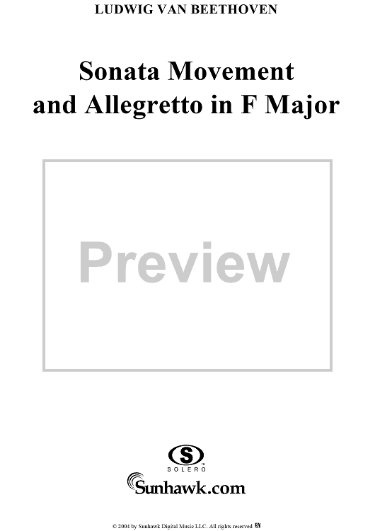 Digital Sheet Music for Sonata Movement and Allegretto in F Major by Ludwig van Beethoven scored for Piano Solo; id:296396