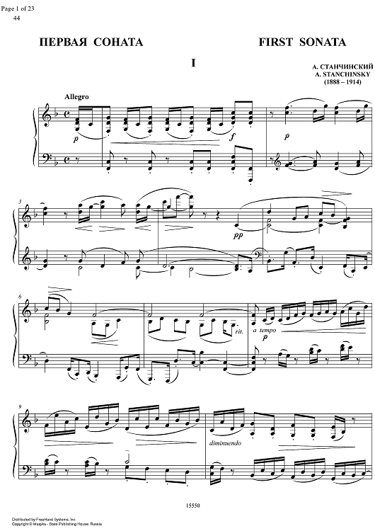 Digital Sheet Music for Sonata No. 1 by , Alexey Vladimirovich Stanchinsky scored for Piano Solo; id:337126