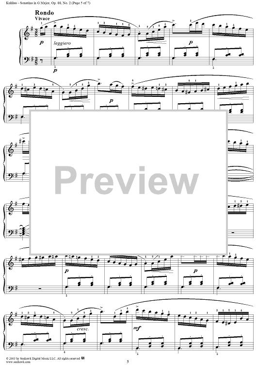 Digital Sheet Music for Sonatina in G Major, Op. 88, No. 2 by Ludwig Klee, Friedrich Kuhlau scored for Piano Solo; id:294503