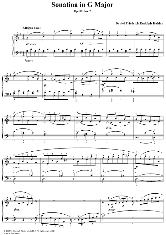 "Sonatina in G Major, Op. 88, No. 2" Sheet Music by Friedrich Kuhlau