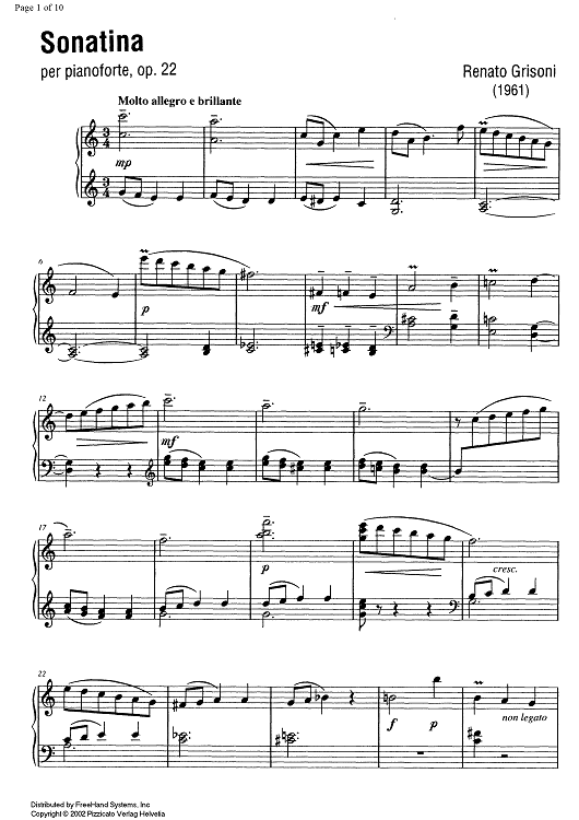 Digital Sheet Music for Sonatina by , Renato Grisoni scored for Piano Solo; id:338524