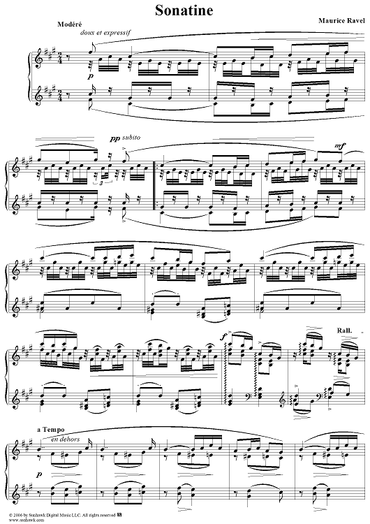 Digital Sheet Music for Sonatine by Maurice Ravel scored for Piano Solo; id:317811