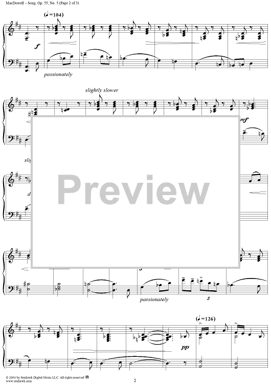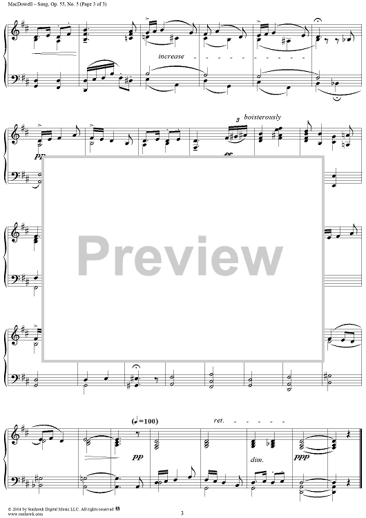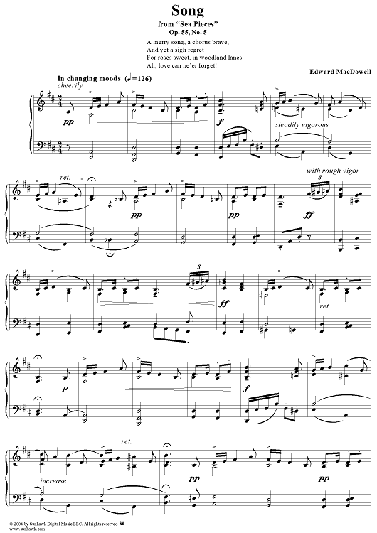 Digital Sheet Music for Song, Op. 55, No. 5 by Edward MacDowell scored for Piano Solo; id:295524
