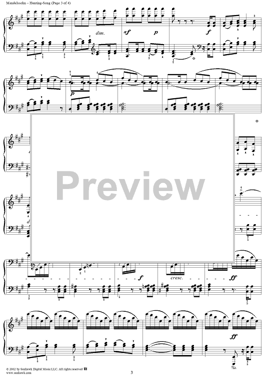 "Songs Without Words, bk. 1, op. 19, no. 3 ("Hunting Song")" Sheet Music by Felix Mendelssohn