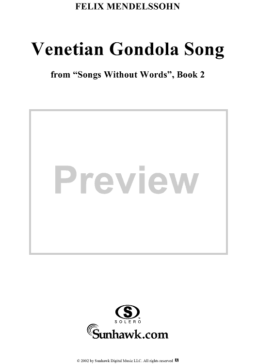"Songs Without Words, bk. 2, op. 30, no. 6 (Venetian Gondola Song)" Sheet Music by Felix Mendelssohn