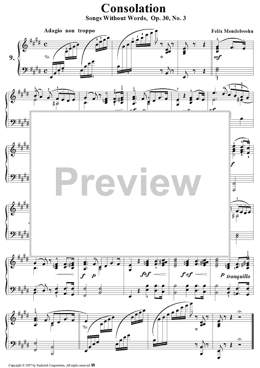 "Songs Without Words (Book II), op. 30, no. 3: Consolation" Sheet Music by Felix Mendelssohn