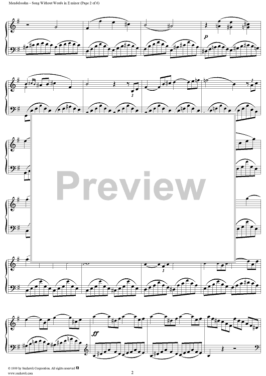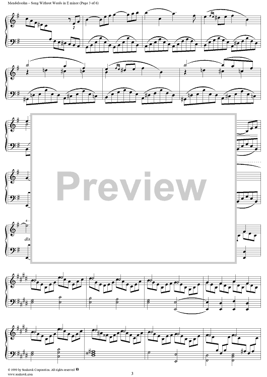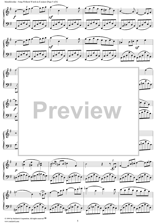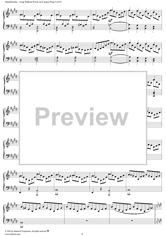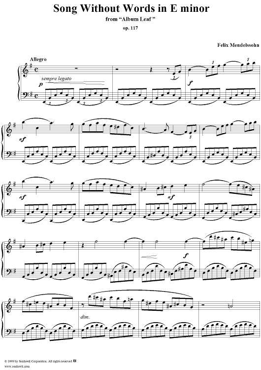 Digital Sheet Music for Songs Without Words in E Minor (Album Leaf) by Felix Mendelssohn scored for Piano Solo; id:259024