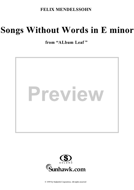 "Songs Without Words in E Minor (Album Leaf)" Sheet Music by Felix Mendelssohn
