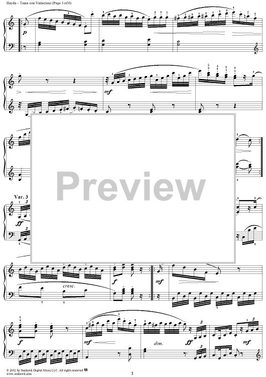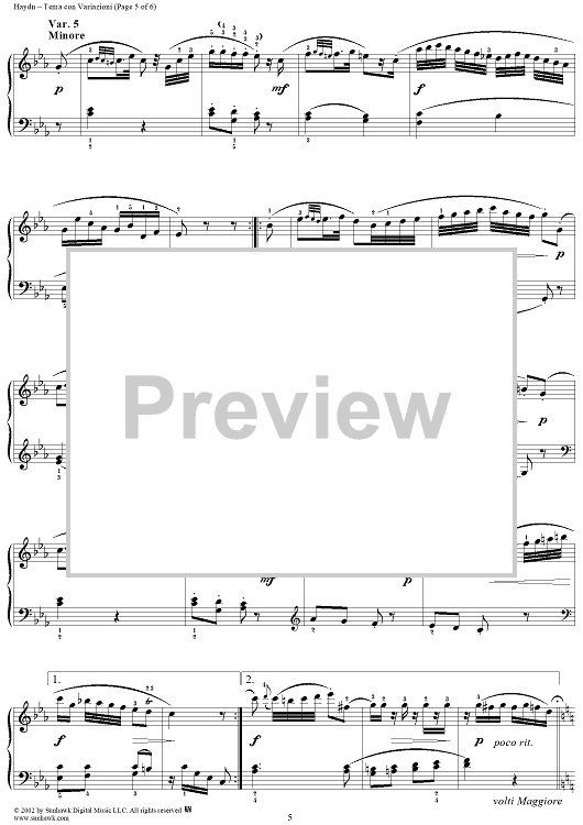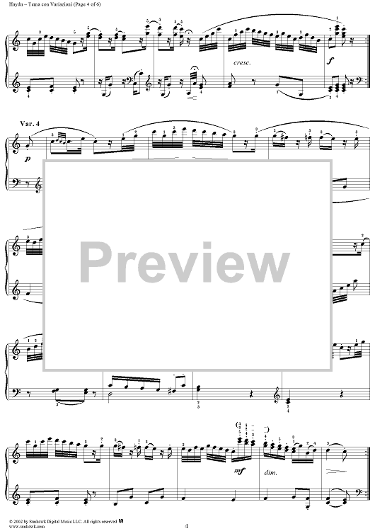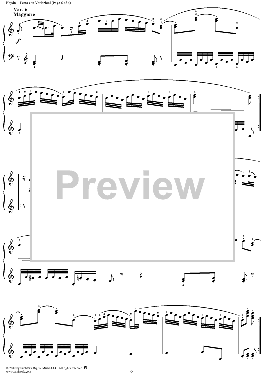 Digital Sheet Music for Tema con Variazioni in C Major by Franz Joseph Haydn scored for Piano Solo; id:265878