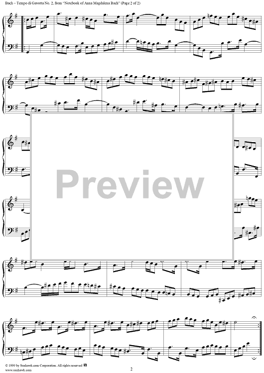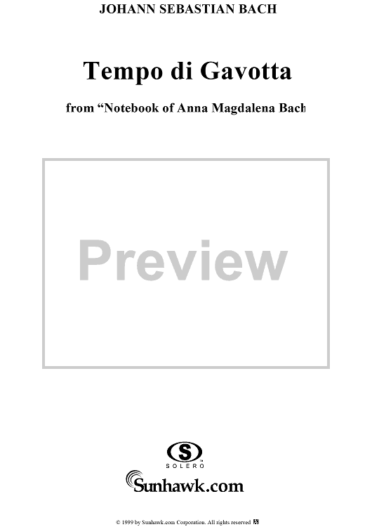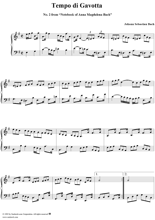 Digital Sheet Music for Tempo di Gavotta - No. 2e from "Notebook of Anna Magdalena Bach" (1725) by Johann Sebastian Bach scored for Piano Solo; id:273955