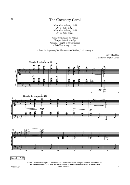 Digital Sheet Music for The Coventry Carol by Traditional English Carol, Larry Shackley scored for Piano Solo; id:434534