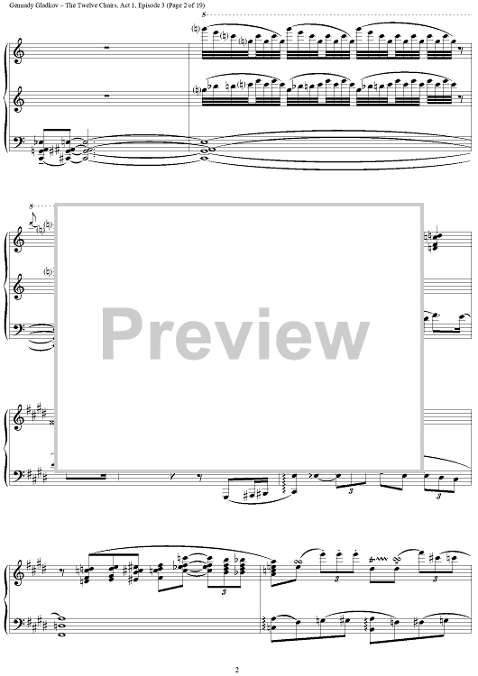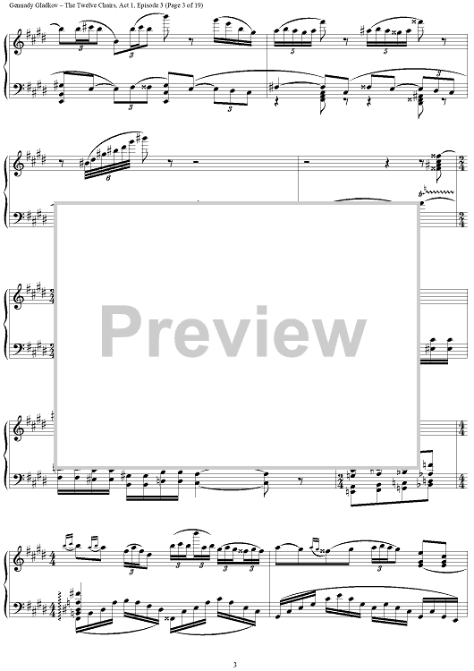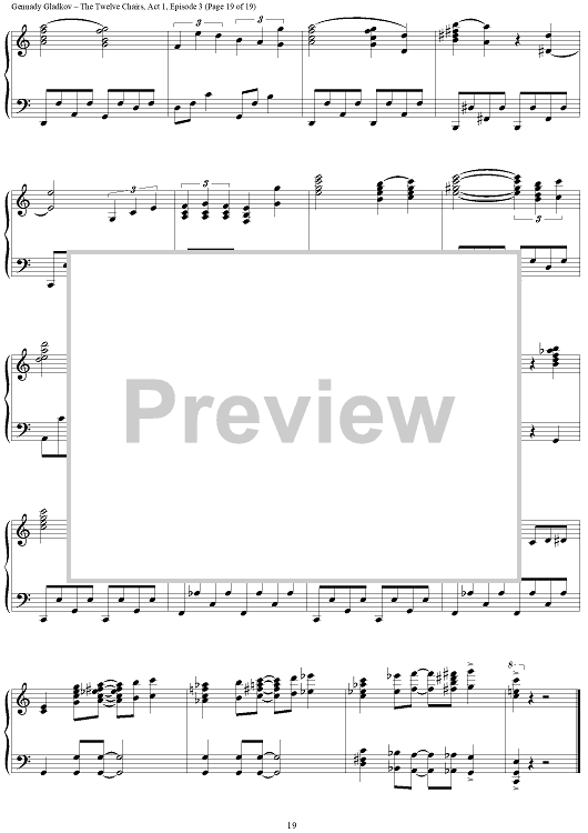 Digital Sheet Music for The Twelve Chairs. Act 1. Episode 3 – The First Chair by , Gennady Gladkov scored for Piano Solo; id:403479