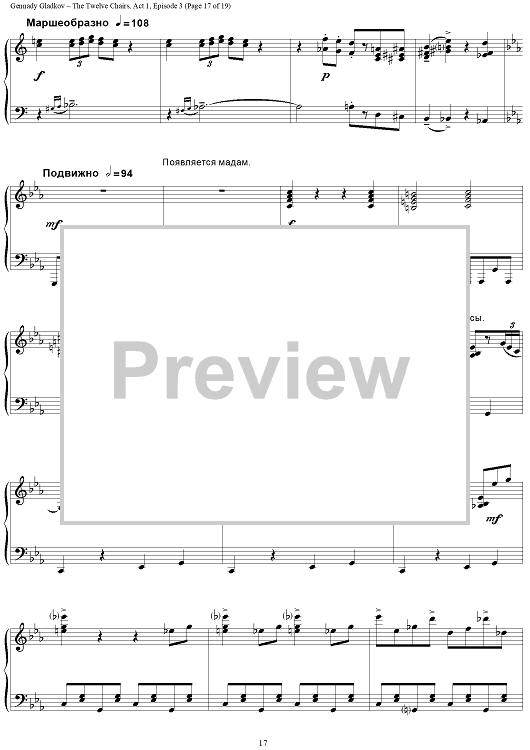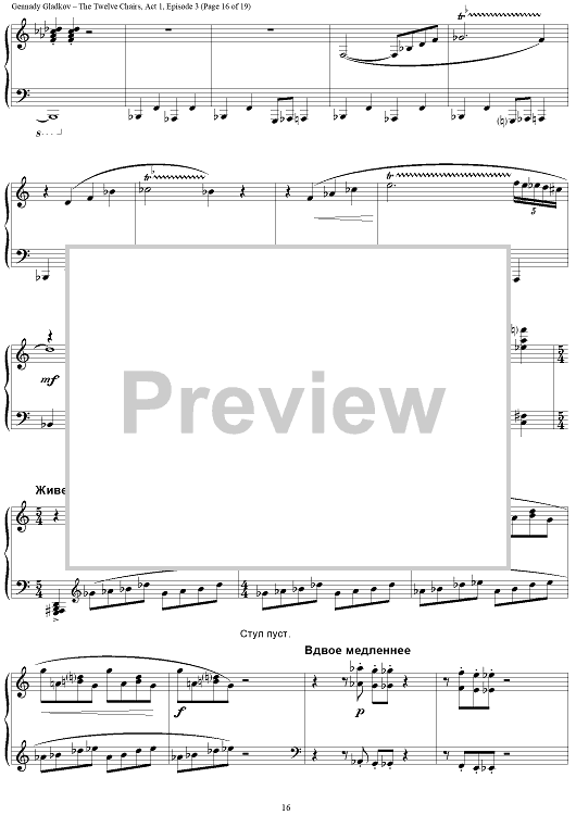 "The Twelve Chairs. Act 1. Episode 3 – The First Chair" Sheet Music by Gennady Gladkov