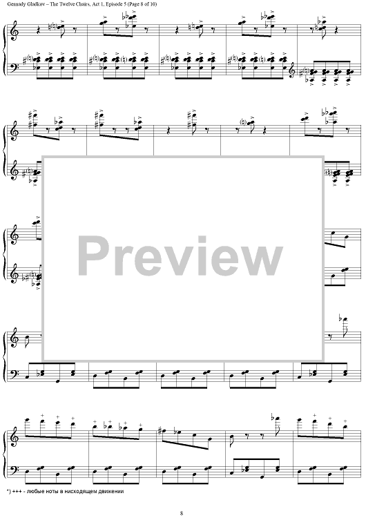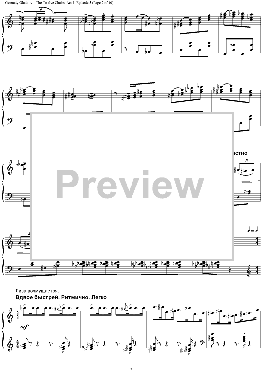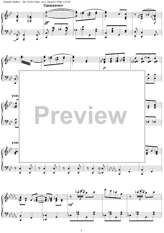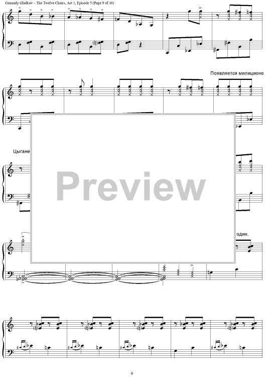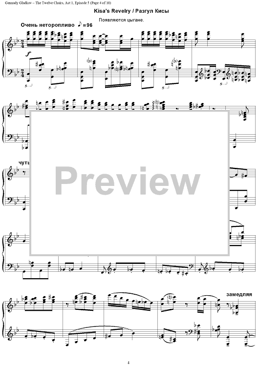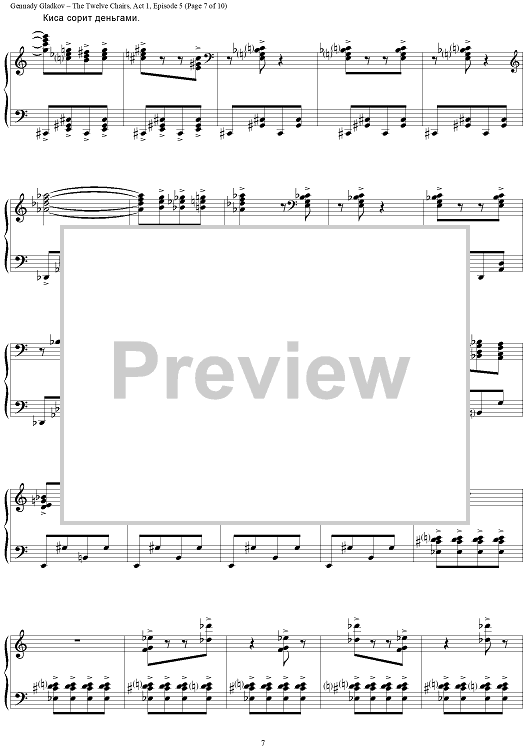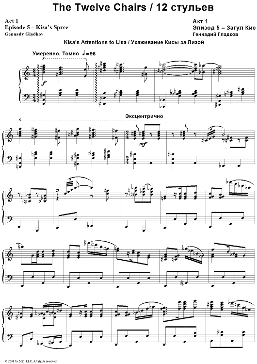 Digital Sheet Music for The Twelve Chairs. Act 1. Episode 5 – Kisa’s Spree by , Gennady Gladkov scored for Piano Solo; id:403481