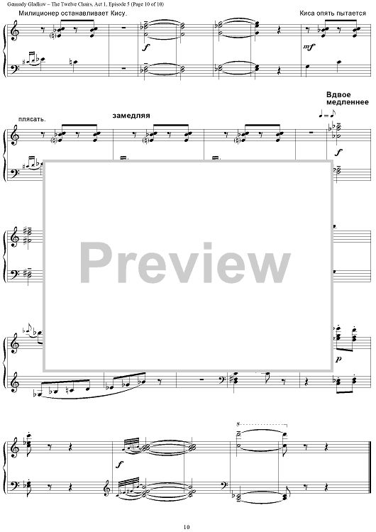 "The Twelve Chairs. Act 1. Episode 5 – Kisa’s Spree" Sheet Music by Gennady Gladkov